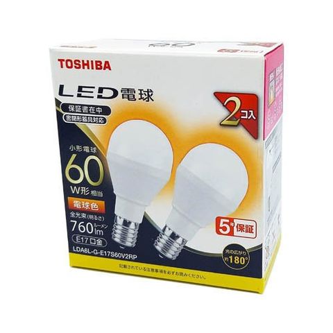 東芝 LED電球 E17 60W 電球色広配光 LDA6L-G-E17S60V2RP (2個入)