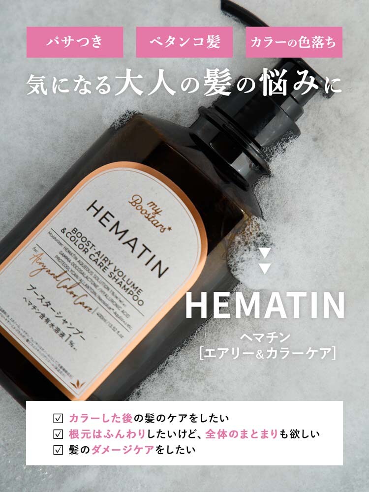 【マイブースターズ ヘマチン ブースター シャンプー エアリー&カラーケアの商品詳細】