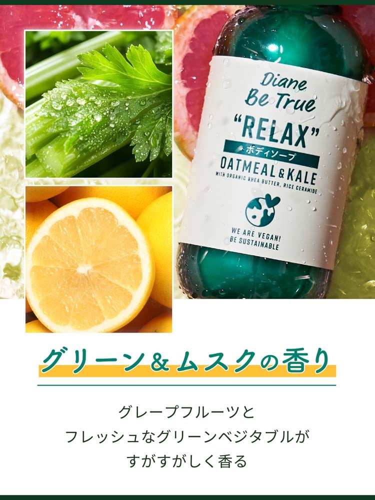 ●リラックスベジーの香り「グレープフルーツ/セロリ/ムスク」:太陽の恵みをたっぷり浴びたジューシーなフルーツと、フレッシュなグリーンベジタブルが調和し、すがすがしい気分に。