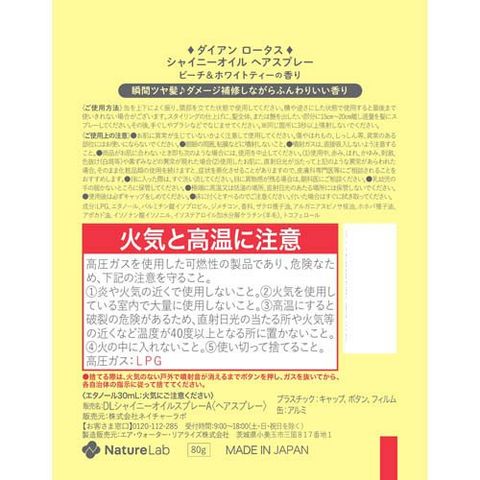 【ダイアン ロータス シャイニーオイルスプレー ピーチ&ホワイトティーの香りの商品詳細】