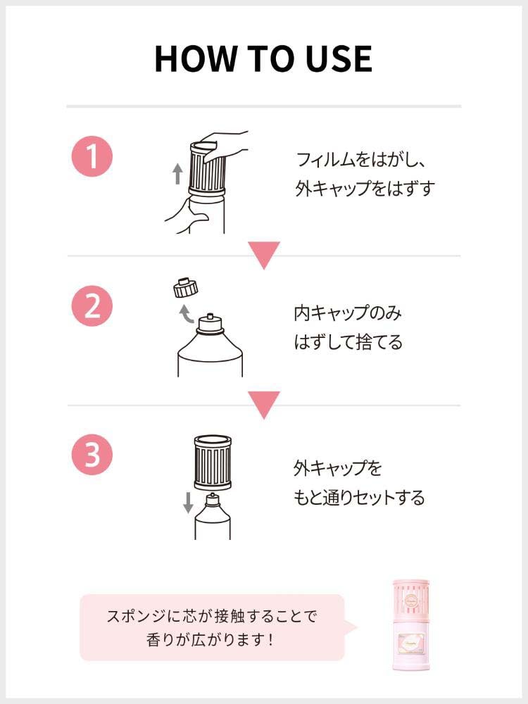 (3)外キャップをもと通りセットする(スポンジに芯が接触することで香りが広がります)
