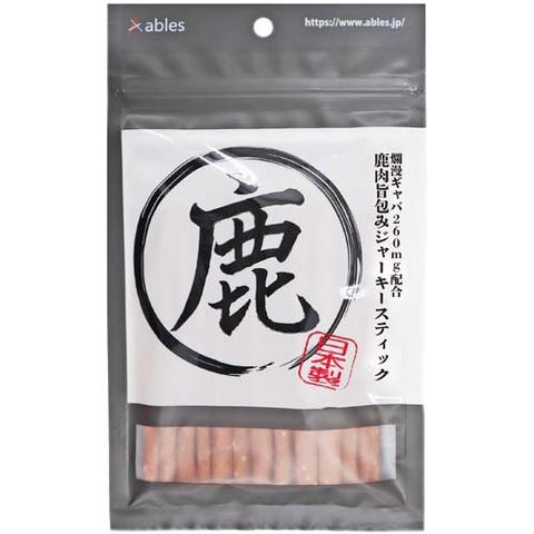 鹿肉、小麦粉、米粉、食物繊維、加工澱粉、米糠発酵物(GABA含有)、ビタミンE、グリセリン、保存料(ソルビン酸K、亜硫酸Na)、プロピレングリコール、発色剤(亜硝酸Na)