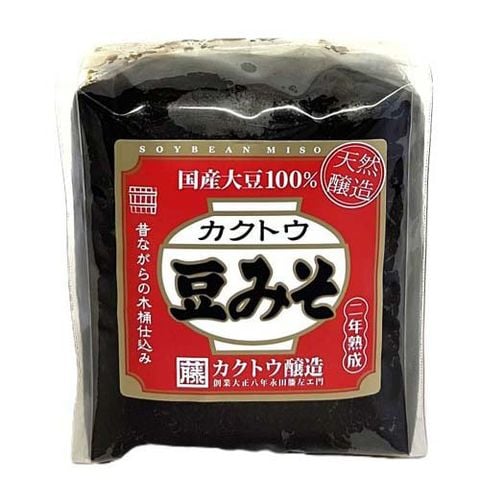 ●「カクトウ豆みそ」は、粒よりの国産大豆と天日塩を原料に杉の大桶で約二年間熟成させ、桶から掘り出した濃厚なみそです。