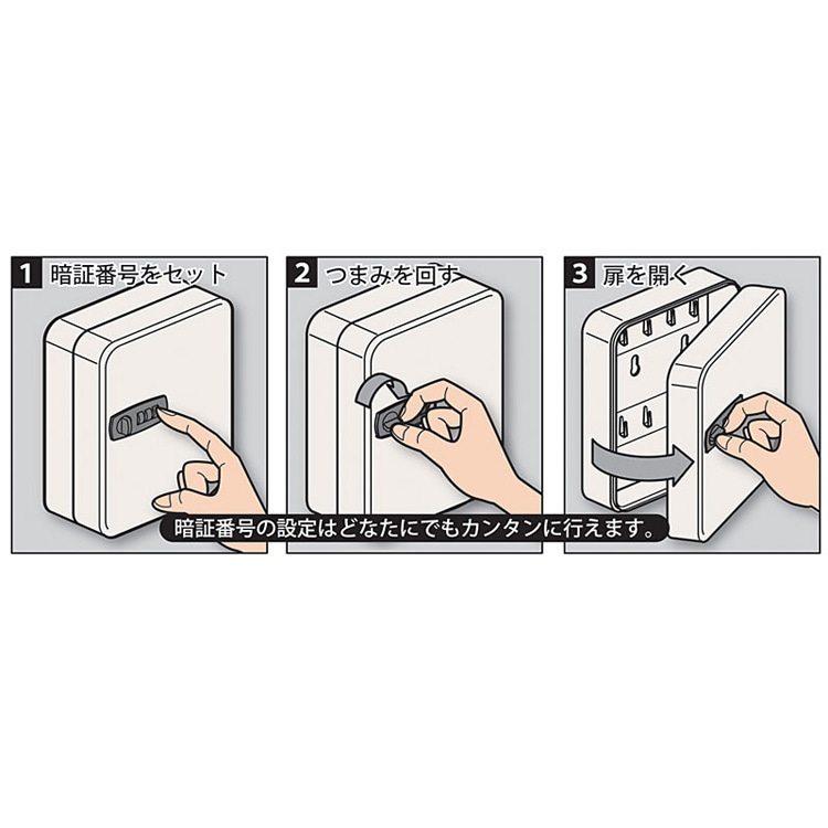 ●3桁の暗証番号を合わせるだけのカンタン操作です。