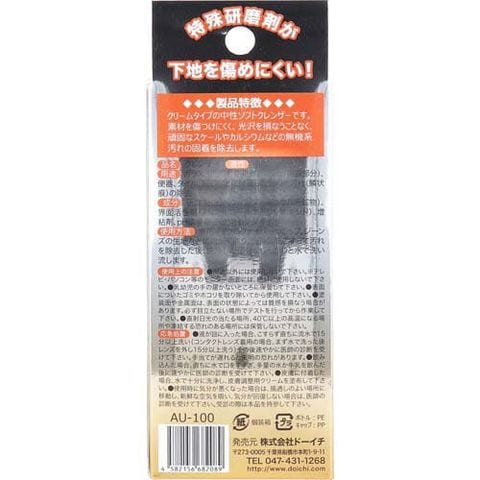 | 研磨剤(35%ケイ酸アルミニウム系鉱物)、界面活性剤(1%アルコールエチレンオキシド)、増粘剤、pH調整剤、天然オレンジオイル |