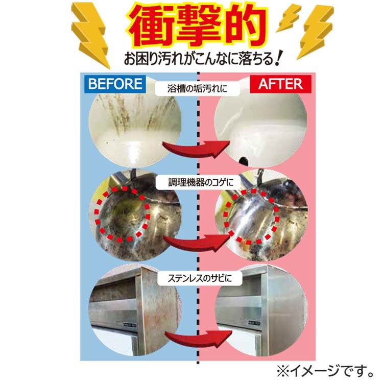 ●油汚れ、コゲつき、石鹸カス等の洗浄。