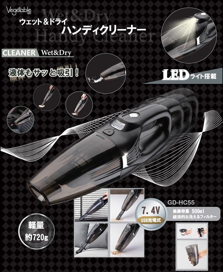 【ベジタブル USB充電式 ウェット&ドライ ハンディクリーナー GD-HC55の商品詳細】
