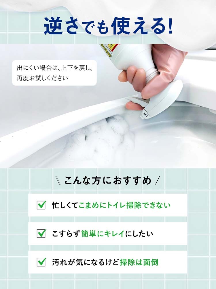 ●汚れに長時間留まる、スタミナ密着泡のトイレ用洗浄スプレー。