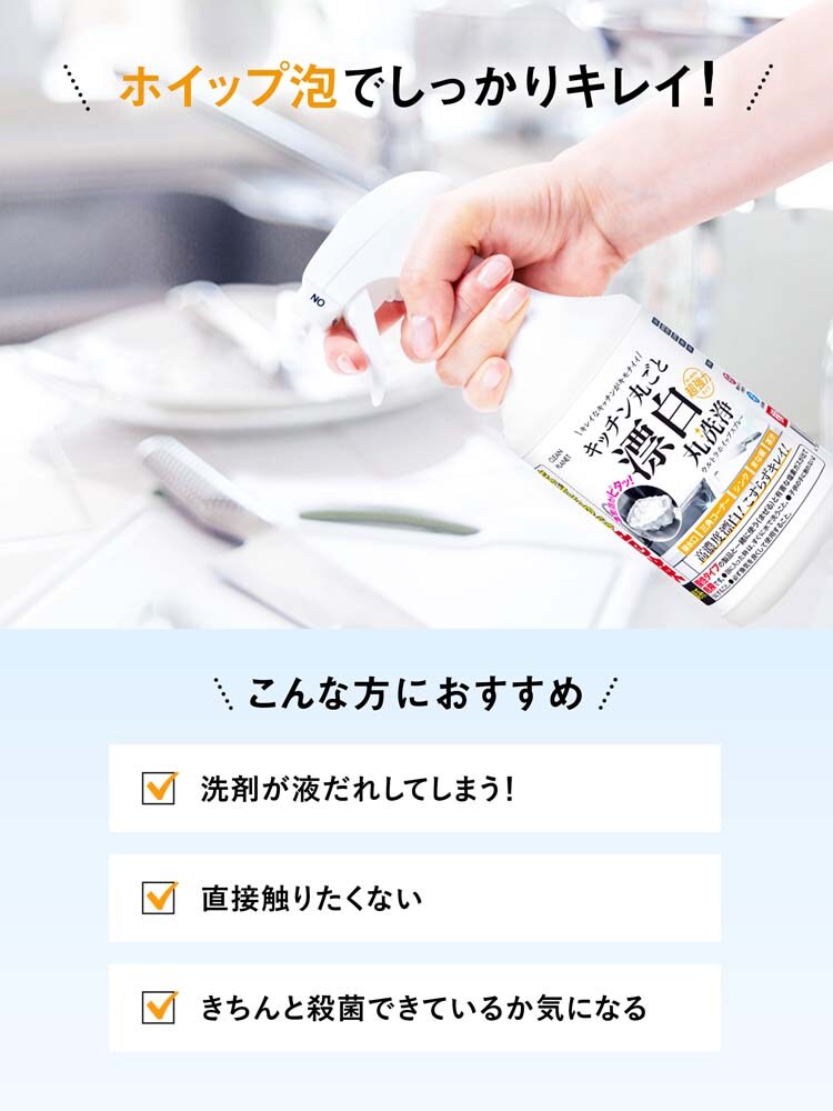 ●汚れに長時間留まる、スタミナ密着泡のキッチン用漂白洗浄スプレー。