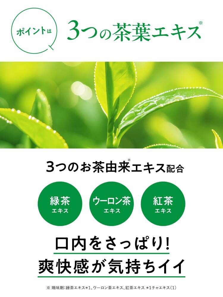 ●3つのお茶由来成分配合(矯味剤):緑茶エキス※、ウーロン茶エキス、紅茶エキス