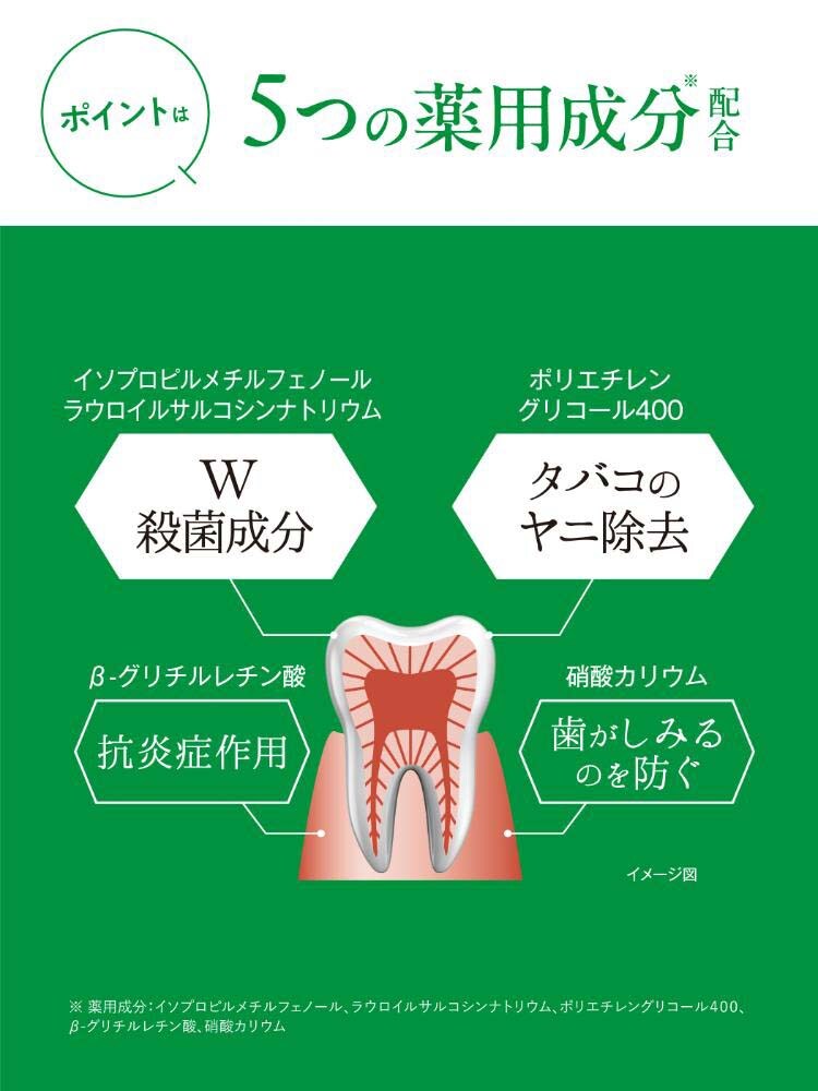 ●ダブル殺菌成分配合で口臭予防:イソプロピルメチルフェノール(IPMP)、ラウロイルサルコシンナトリウム(LSS)