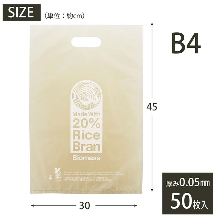 ゴミ袋 米ぬか20%配合 持ち手付き B4 日本製 ナチュラル (50枚入)