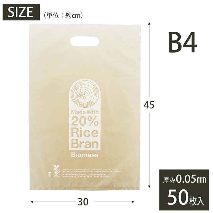 ゴミ袋 米ぬか20%配合 持ち手付き B4 日本製 ナチュラル (50枚入×2冊)
