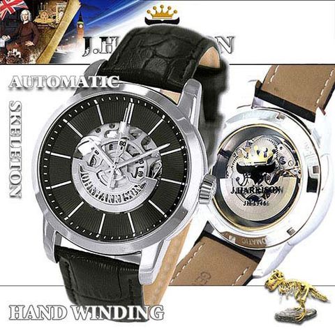 J.HARRISON フロントローター 自動巻き スケルトン時計 シルバー JH-1946SB (1個)