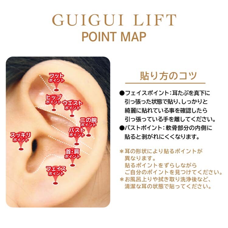 ・片方の耳ポイントにシールを貼り、片方の部位がすっきりしたら成功です。もう片方にも貼ってください。