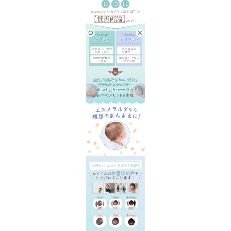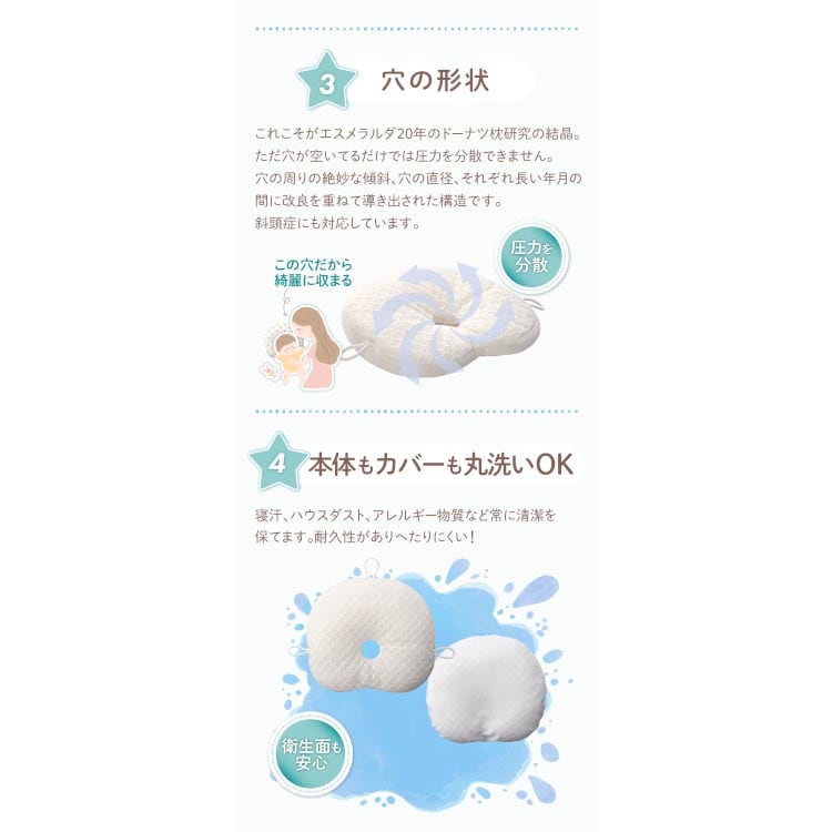 | ・カラー:ホワイト ・サイズ:W305×D275×H10~75mm ・重量:450g ・枕:表地/ポリエステル60%、テンセル40%、裏地/ポリエステル100% ・枕:中身/エラストマー100% ・枕:カバー/綿100% ・対象年齢:新生児~1歳迄 |