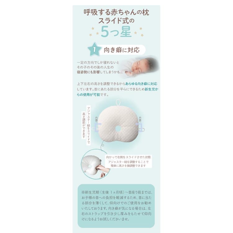 呼吸する赤ちゃんのまくら スライド式 ホワイト (1個)