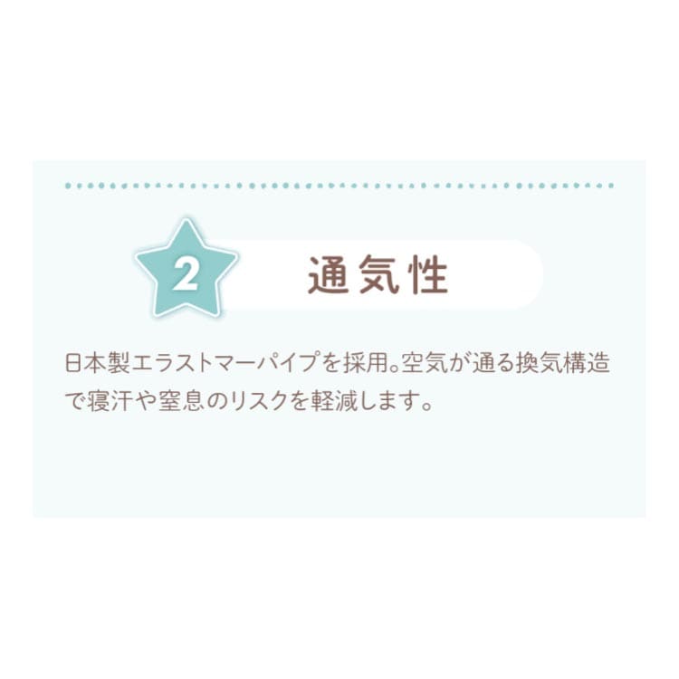 ●中の詰め物には国産エラストマーパイプを使用し、へたりにくい、熱がこもらず、お洗濯も可能。
