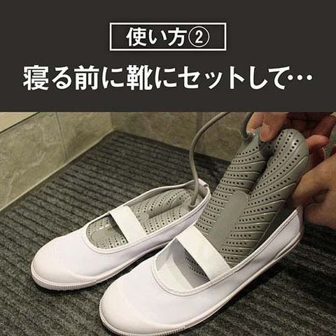 ●乾かしたい靴にセットして、電源を入れるだけのかんたん操作!