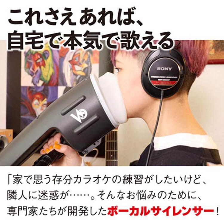 ●「自宅で思う存分、カラオケの練習がしたい」「でも、隣人に迷惑がかかって、トラブルになってしまっては」そんなお悩みを抱えた方々のために、音楽家と研究者と技術者が本気の協同開発をしたボーカルサイレンサー。
