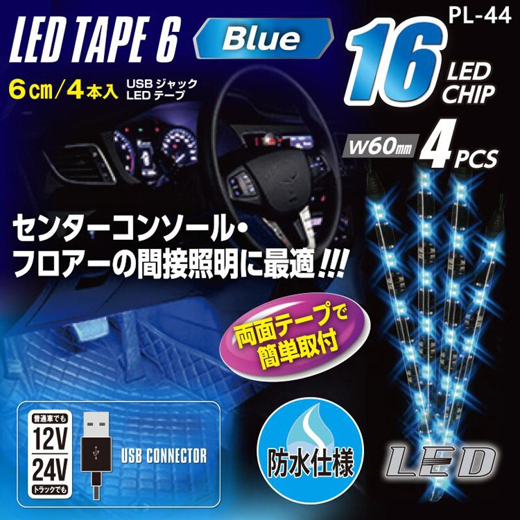 USBジャックLEDテープ ブルー PL-44 (4本)