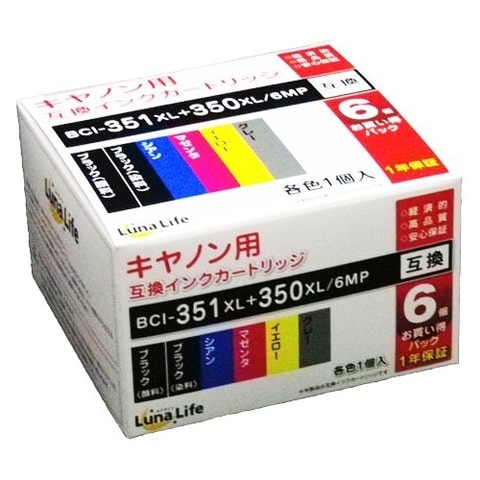 ルナライフ キヤノン用 互換インクカートリッジ BCI-351XL+350XL/6MP 6本パック (1セット)
