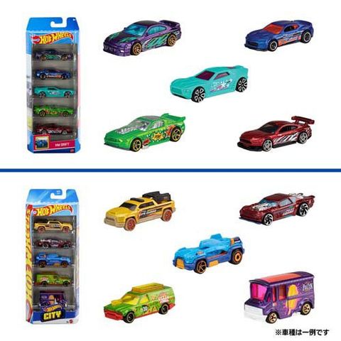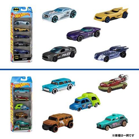 | ミニカー5台入りパック×12セット、計60台 (内訳) HW DriftTM (HTV51) HW Track BuilderTM (HTV52) HW Remote AdventuresTM (HTV53) HW Drag StripTM (HTV54) Street BeastsTM (HTV55) X-RaycersTM (JBJ74) HW CityTM (JBJ75) BatmanTM (JBJ76) HW GetawaysTM (JBJ77) NightburnerzTM (JBJ87) HW Let's RaceTM (JBJ79) Formula 1(R) (JBJ78) |