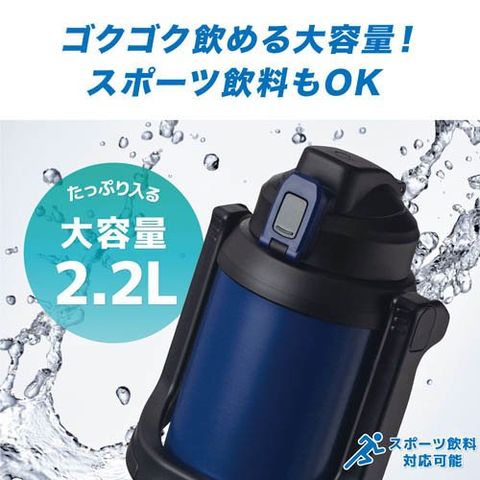 【スポーツジャグ 2.2L 保冷 ワンタッチ 直飲み ネイビー ADJB-2200NVの商品詳細】