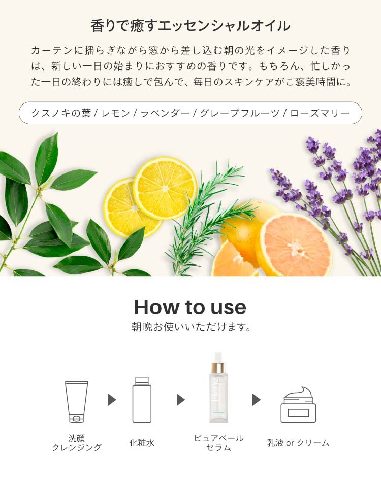 ●「PURE VAIL SERUM」の「VAIL」は、「VEIL(ベール)」のように肌をやさしく包み込むニュアンスを持ちながらも、あえて「VAIL」という古語を選びました。これは、敬意をもって肌と向き合うという私たちの姿勢を象徴しています。 過剰な装飾ではなく、素肌本来の美しさにそっと寄り添う、そんな美容液でありたい。PURE VAIL SERUM・・・それは、美しさに敬意を捧げるベールです。