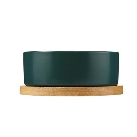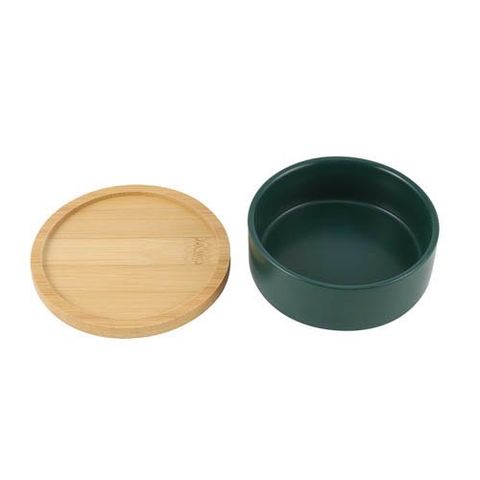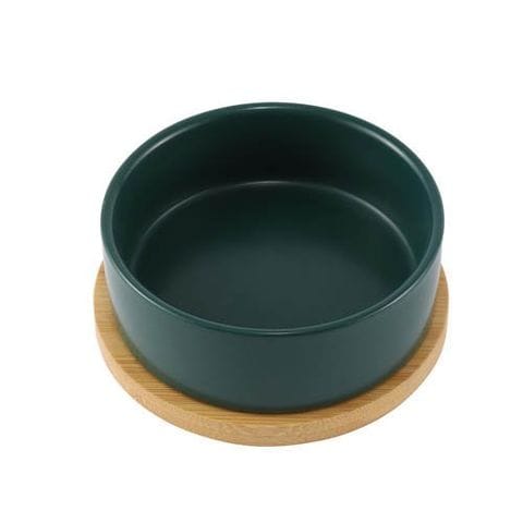 ●温もりのある色合いの陶器と竹製のトレイがセットになったペット用食器です。