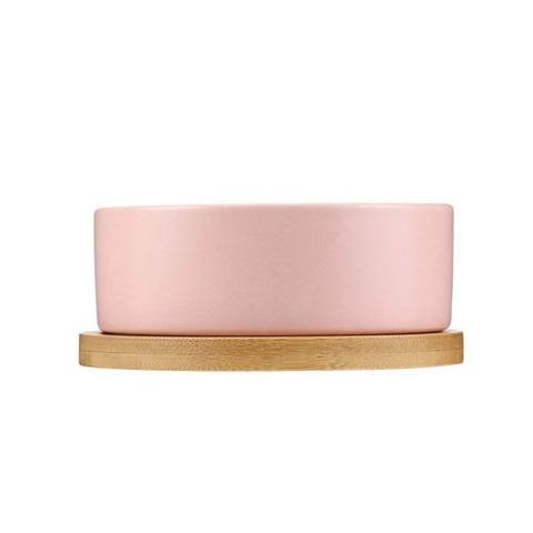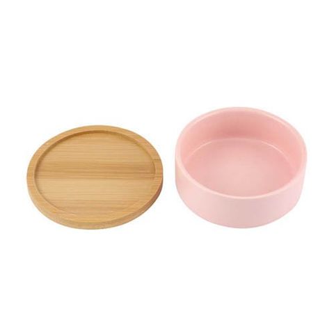 ●温もりのある色合いの陶器と竹製のトレイがセットになったペット用食器です。