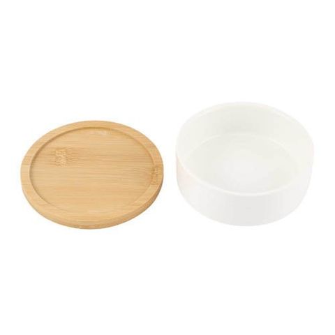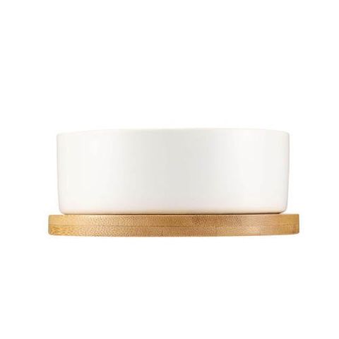 ●温もりのある色合いの陶器と竹製のトレイがセットになったペット用食器です。