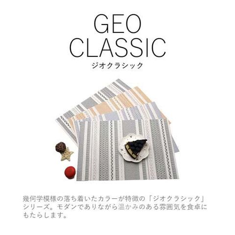 ●幾何学模様の落ち着いたカラーが特徴の「ジオクラシック」シリーズのランチョンマットはモダンでありながら温かみのある雰囲気を食卓にもたらします。