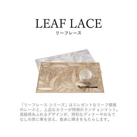 ●「リーフレース シリーズ」はエレガントなリーフ模様のレースと、上品なカラーが特徴のランチョンマット。