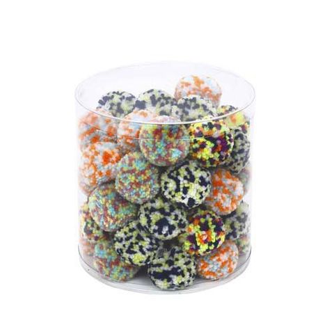 ●「ループライト ウールボールネオ」は柔らかな触感の毛糸でできたミックスカラーのモコモコのボール型おもちゃ(単品)です。転がして捕まえるのにぴったりなサイズと感触です。
