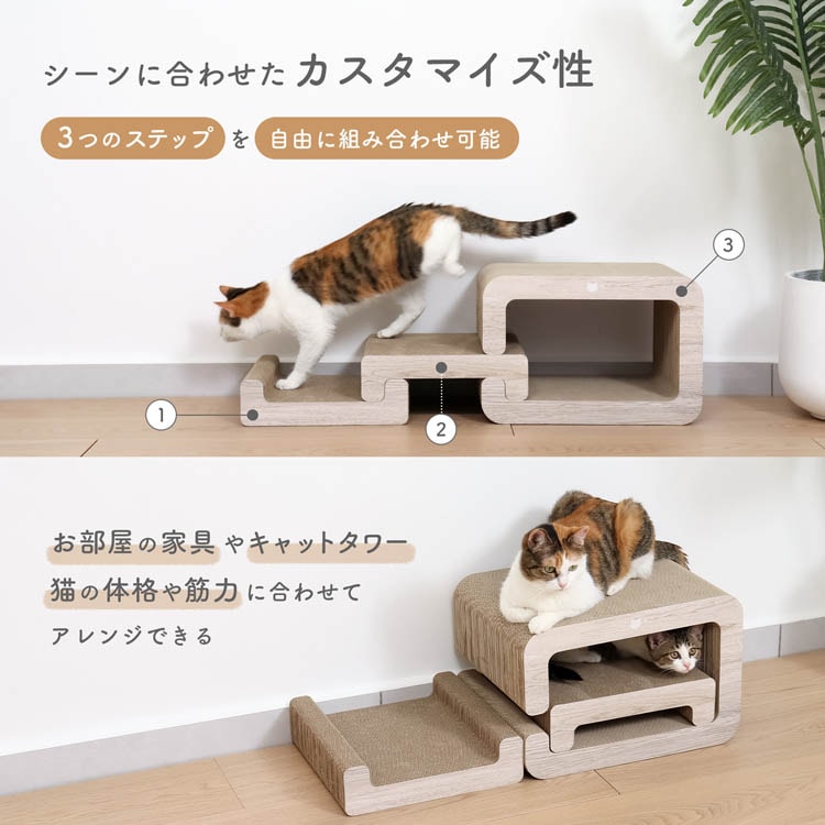●2つで使ったり、3つのステップばらばらでも、おうちの家具やタワー、猫の状態に合わせてお使いいただけます。