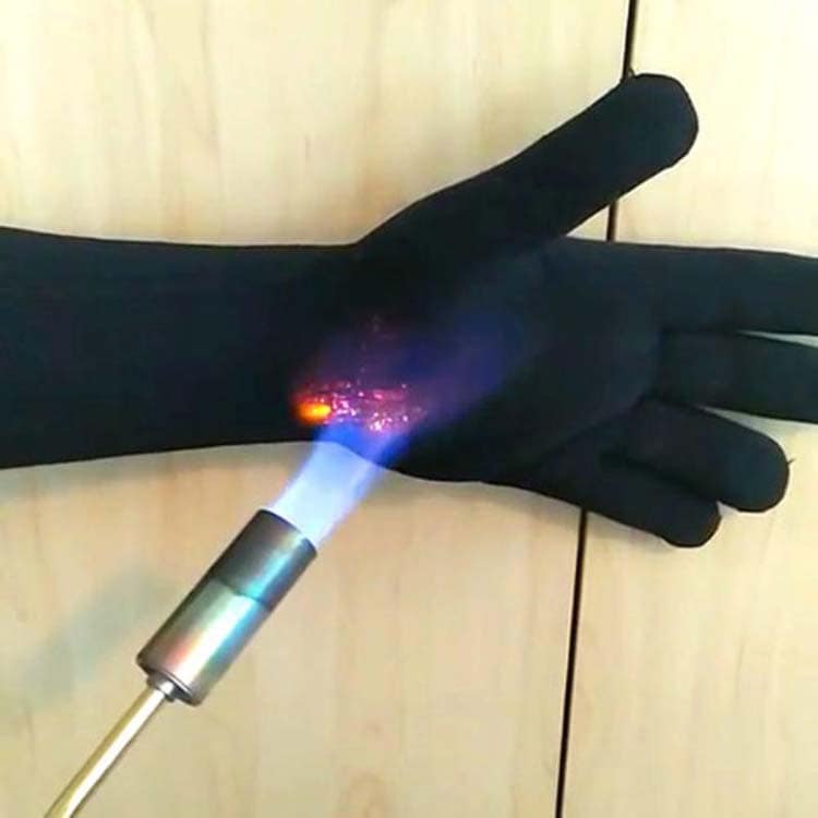 ●BLACK FIREは優れた柔軟性を備えながら、瞬間的には1800度の高温に耐え、1000度以上の環境でも3分以上の耐久性を持つ素材で不燃性紡績糸と生地です。