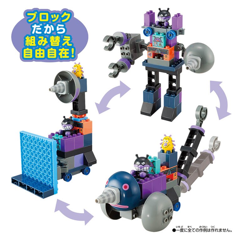 ●バイキンじょうやひみつきちなどが作れるブロックセット!