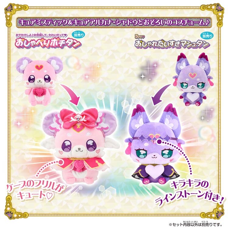 ●別売りのおしゃべりポチタンと、おしゃれだいすきマシュタンに着せられる、キュアミスティック&キュアアルカナ・シャドウとお揃いのコスチュームです。