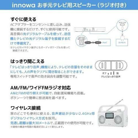 【innowa NHtechnology お手元テレビ用スピーカー ラジオ付き TS001の商品詳細】