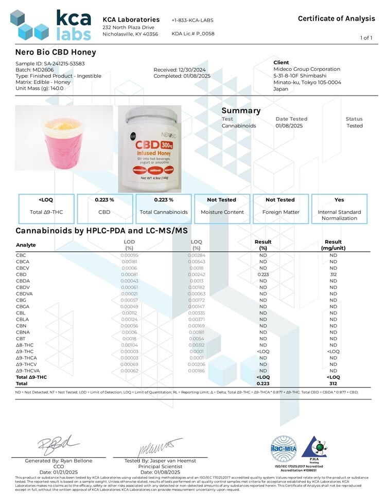●熱処理を行わない生の蜂蜜とカンナビジオール(CBD)のブレンドで作られています。