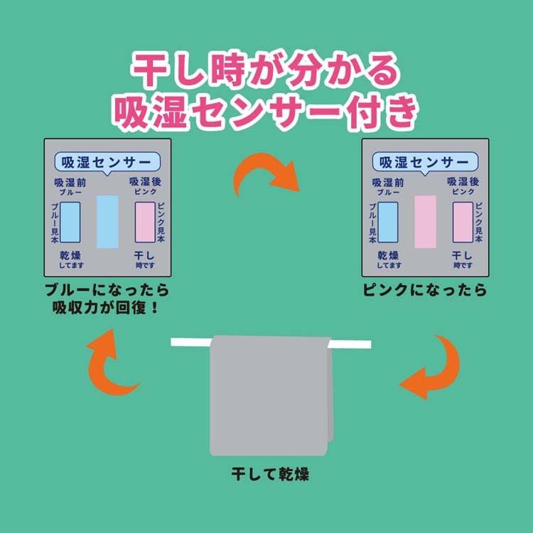 ●ピンクになったら→干して乾燥→ブルーになったら吸収力が回復!