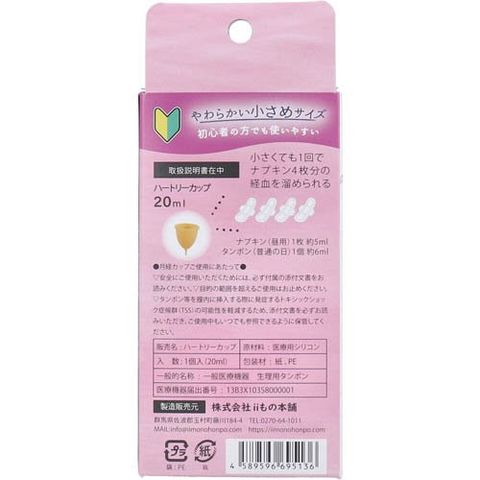 | 個装重量:約31g 内容量:1個入 ★容量 20mL ★原材料 医療用シリコン ★サイズ 直径:42mm/カップ長さ:45mm/ステム17mm |