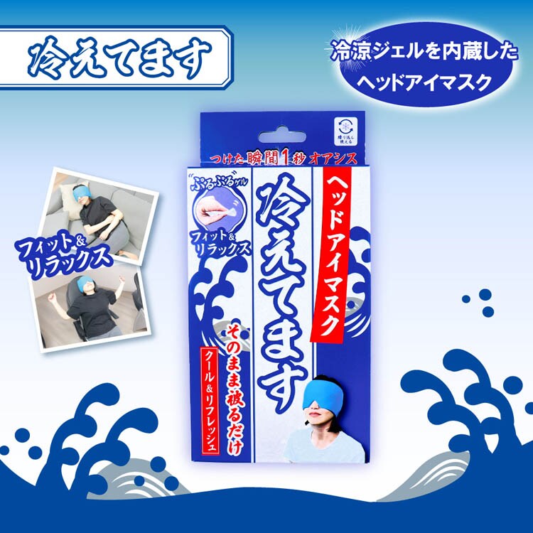 ●冷涼ジェルを内蔵したヘッドアイマスクで心地よい冷たさ。