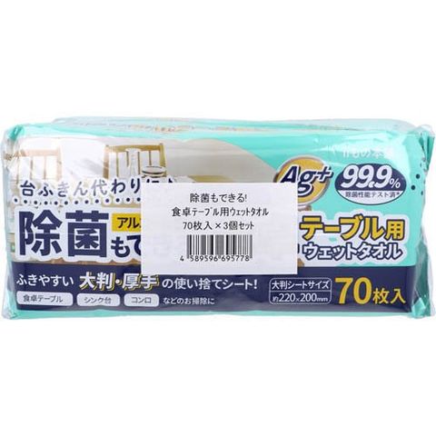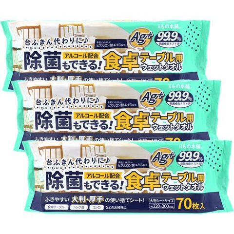 除菌もできる!食卓テーブル用ウェットタオル (70枚入×3個)