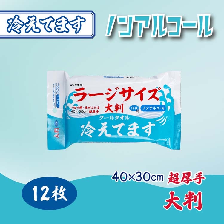 クールタオル ラージサイズ 冷えてます ノンアルコール 大判 40×30cm (12枚入)