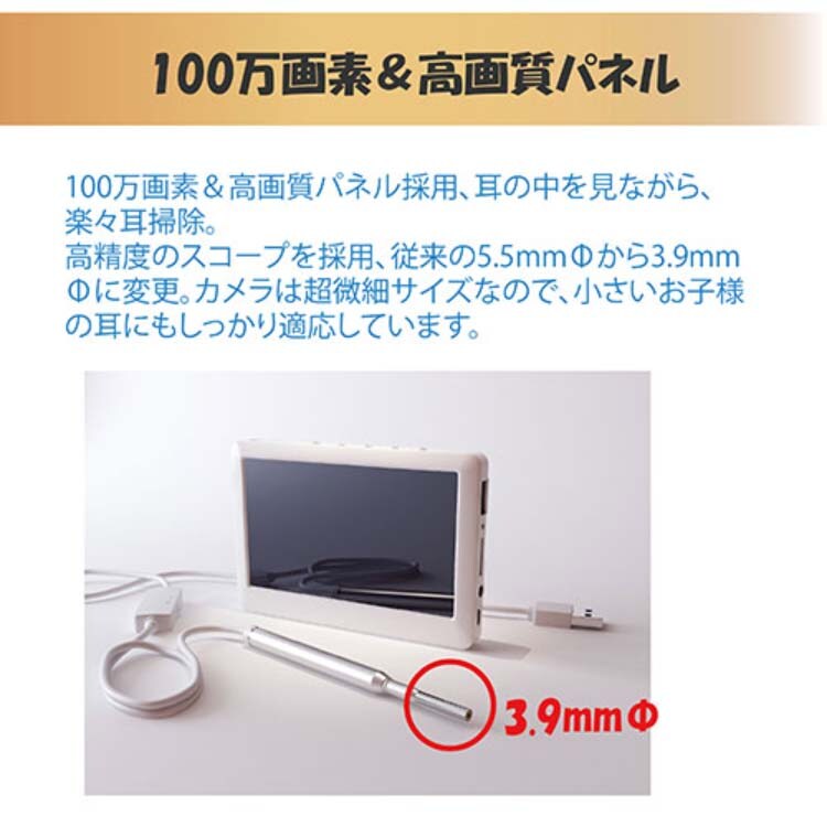 ●100万画素&高画質パネル採用、耳の中はっきり見れます。