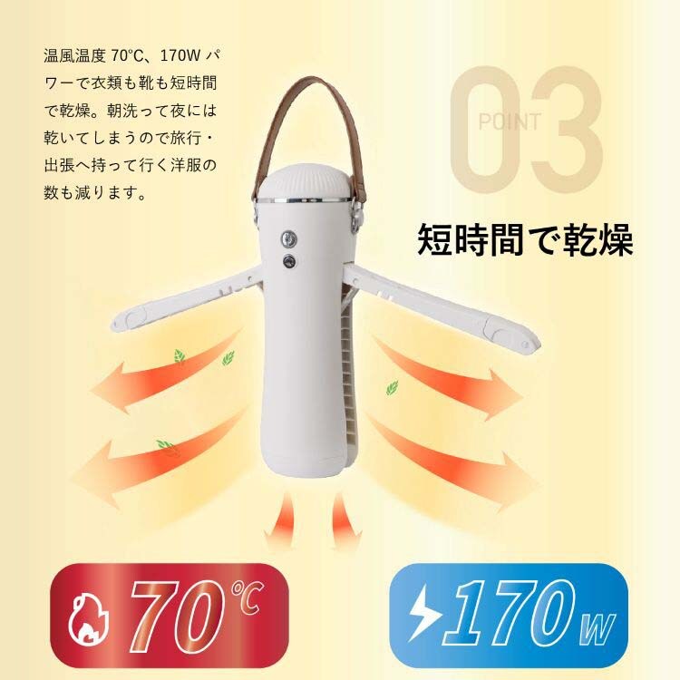 ●コンパクトサイズで170Wパワー・衣類も靴も短時間で乾燥