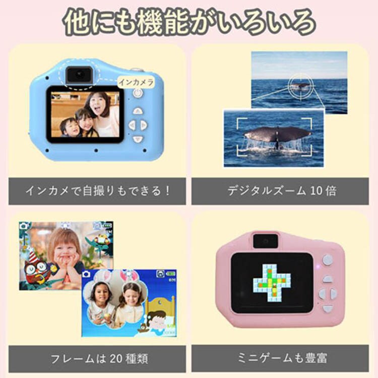 | ・カラー:ブルー ・サイズ:130×90×100mm ・重量:265g ・素材:ABS樹脂 ・画面:2.8インチ ・レンズ角度:110度 ・電源:USB充電式/5V1A ・バッテリー:1000mAh/7.4V ・動画形式:AVI ・画像形式:JPEG ・デジタルズーム:10倍 ・対応音楽ファイル:MP3 ・対応メモリ:MicroSDカード/64GBまで ※別売です ・動画解像度:2560×1440/1920×1080/1280×720 ・画像解像度:36M/30M/24M/20M/10M/8M/5M/3M ・充電時間:約2時間 ※使用状況により異なります ・連続使用時間:最大5時間 ※使用状況により異なります ・印刷の濃さ:3/2/1/0/-1/-2/-3 ・印刷の種類:ドットマトリクス印刷/グレートスケール印刷 ・音量:10段階 ・セット内容:本体、印刷用紙ロール、USBケーブル、ストラップ、落書き用マーカー×3 ・生産国:中国 ・保証期間:1年間 |
