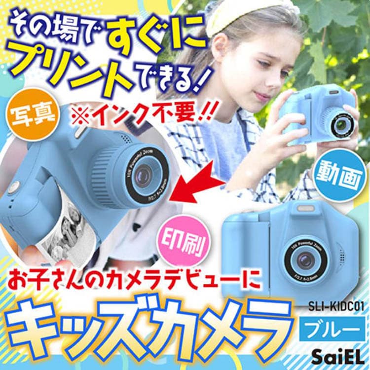 SaiEL キッズカメラ 撮ったらその場ですぐにプリントできる ブルー SLI-KDC01-BL (1個)